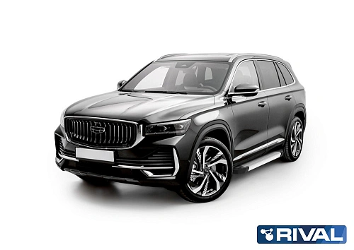 Пороги на автомобиль "Silver" Rival для Geely Monjaro, 2023-